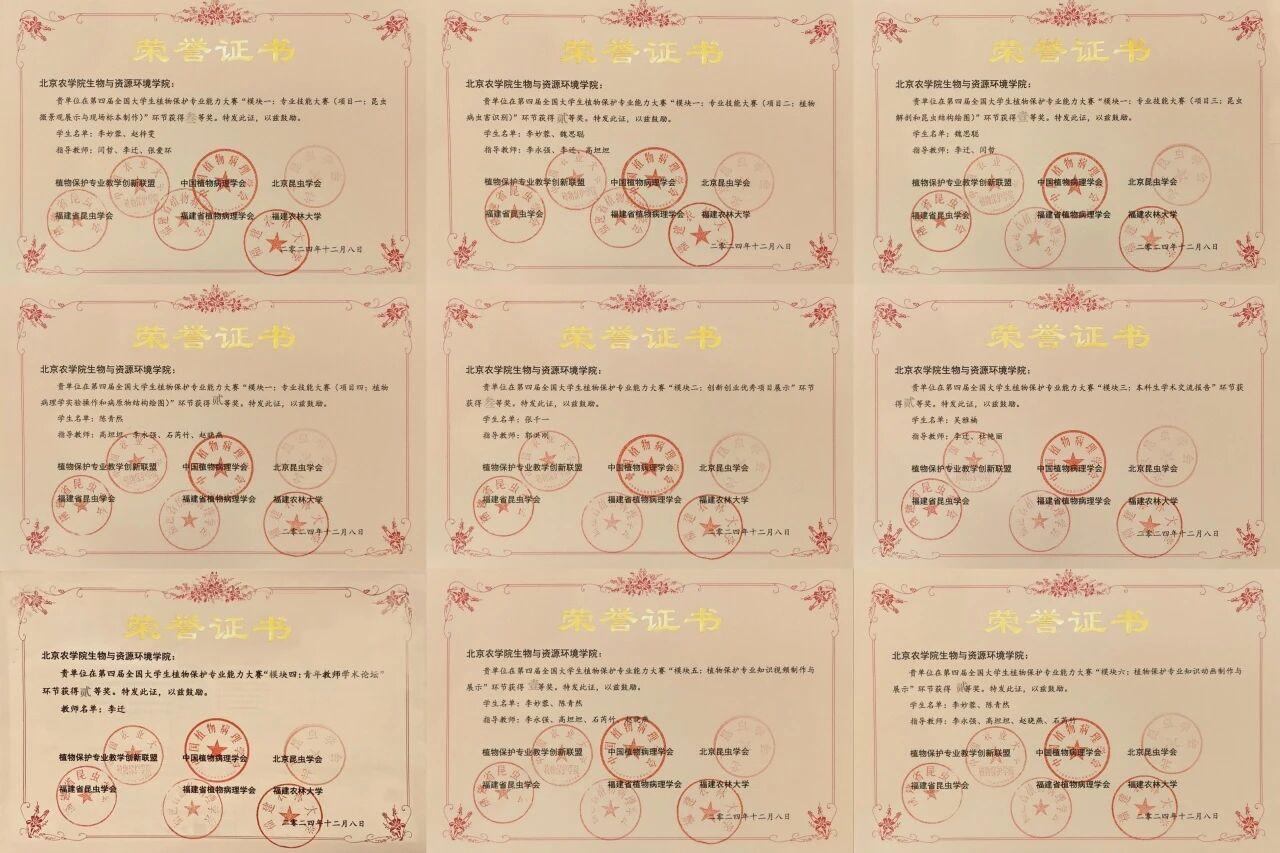 其中 “昆虫解剖和昆虫结构绘图” 和 “植物保护专业知识视频制作与展示”两个单项取得一等奖,“植物病虫害识别”“植物病理学实验操作和病原物结构绘图”“本科生学术交流报告”“青年教师学术论坛”“植物保护专业知识动画制作与展示”五个单项取得二等奖,“昆虫微景观展示与现场标本制作”及“创新创业优秀项目展示”两个单项取得三等奖。此次优异的表现刷新了我院自参赛以来的最佳纪录!