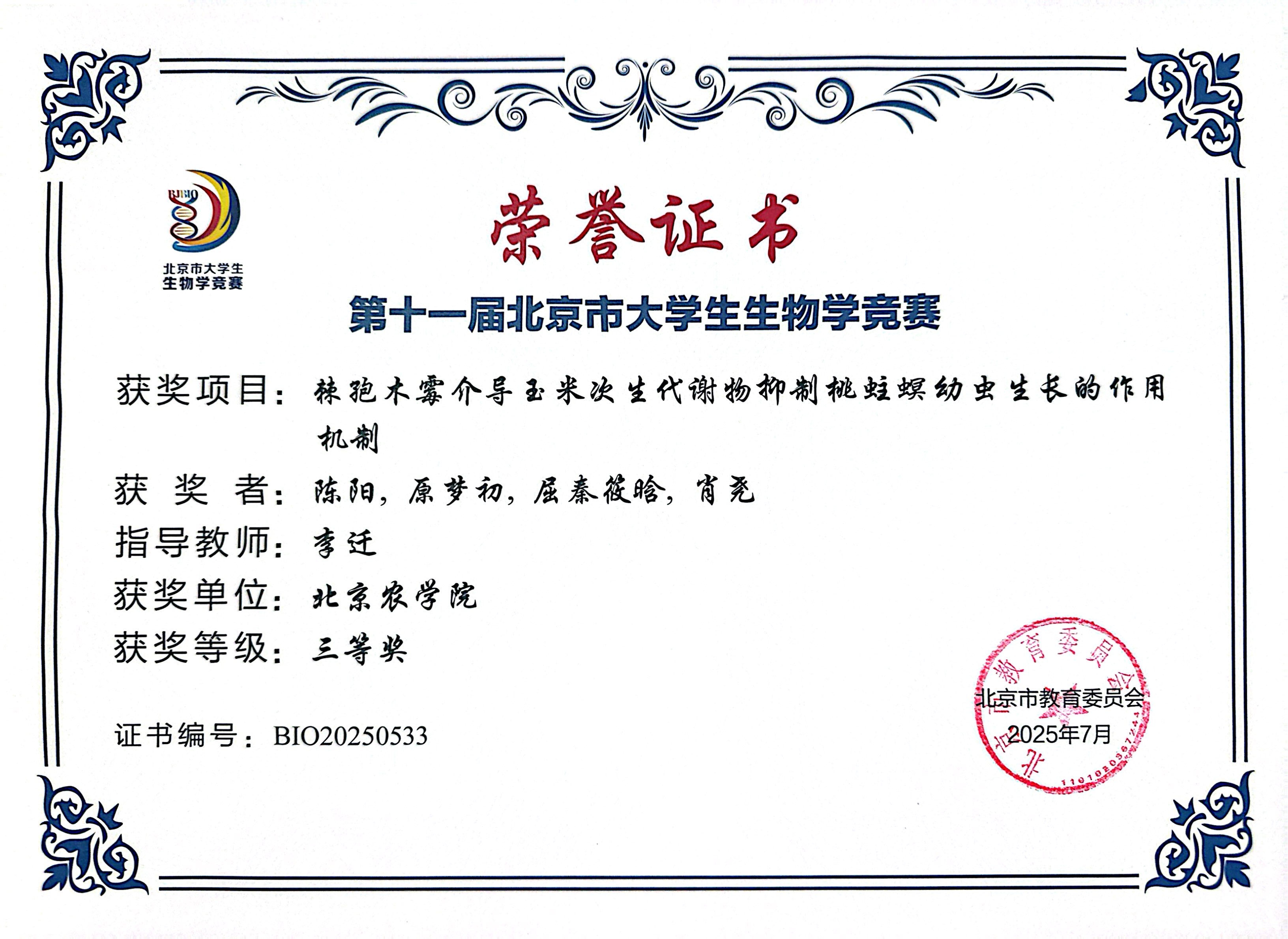 第十一届北京市大学生生物学竞赛 我校师生参赛获奖