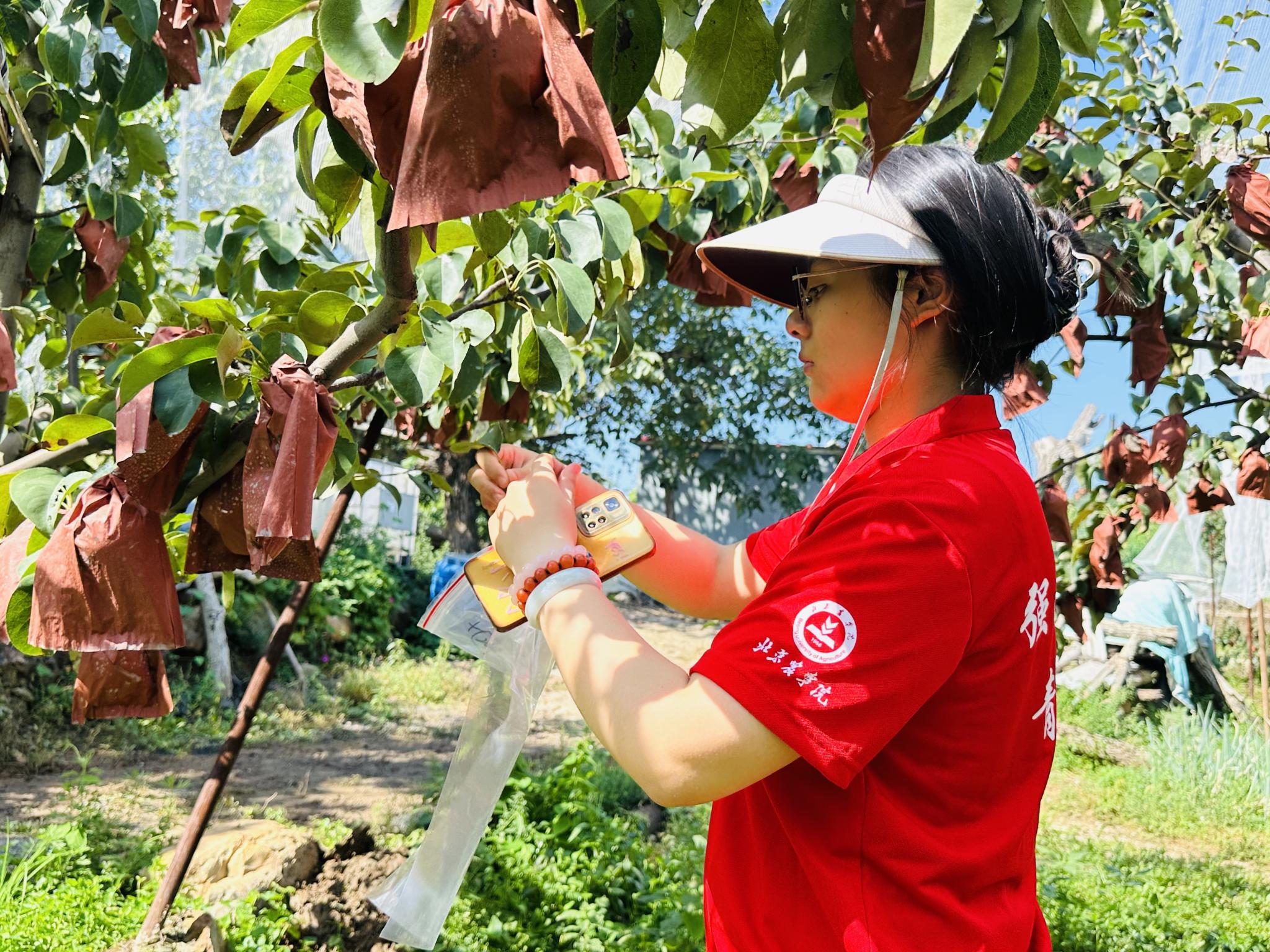 植物医院工作坊护航“梨”香盛夏实践团在任争光、王磊老师的带领下,深入博士农场与果农家中开展样本采集,并在科技小院开设“田间村课”,通过微生物菌剂应用推动梨园绿色防控升级,为乡村振兴注入科技动能。青年学子在服务“三农”中锤炼本领,更在泥土与汗水中收获了成长的“丰收”。