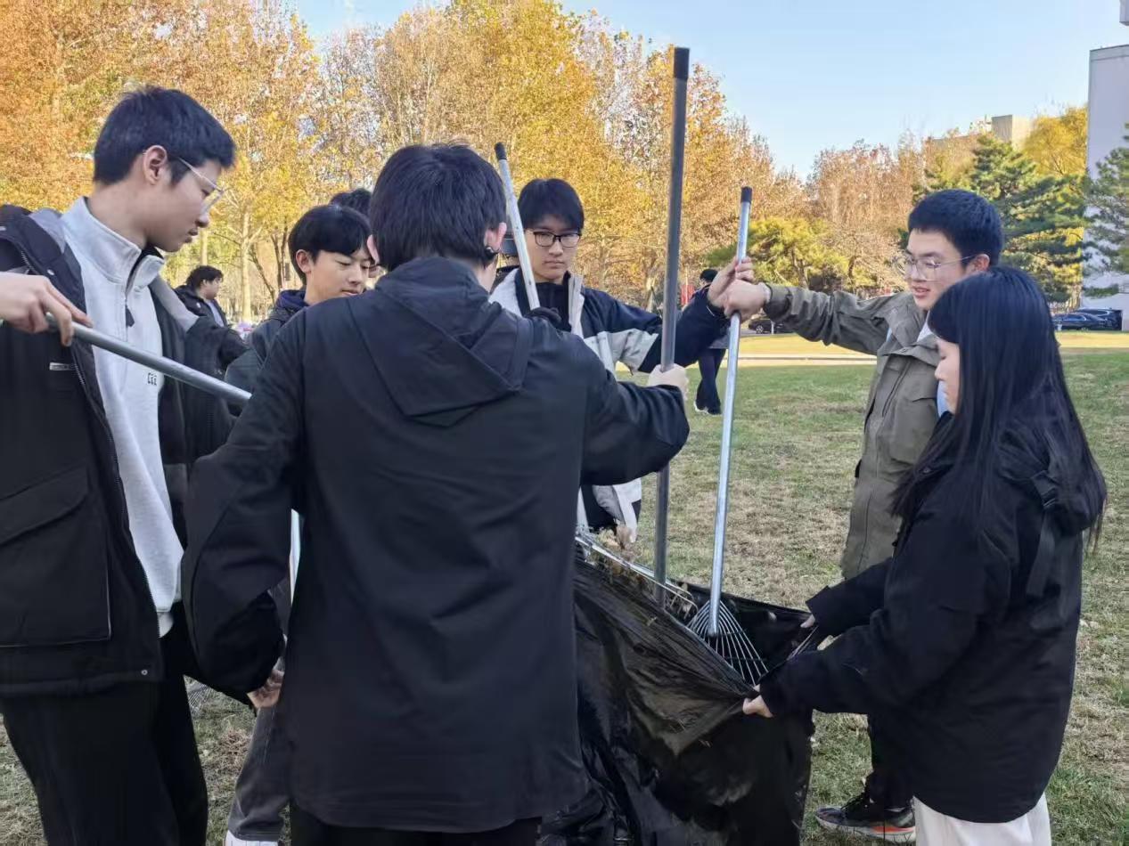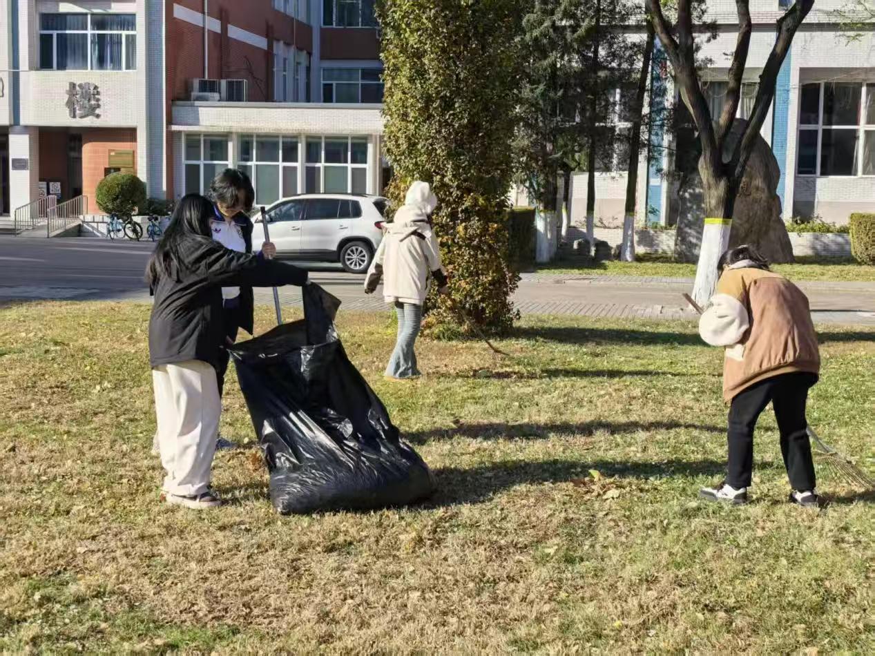 活动当天,工作人员为志愿者们发放了扫帚、垃圾袋、垃圾夹等工具,并进行了分组安排,明确了各小组的负责区域。随着一声令下,志愿者们迅速奔赴各自的责任区域,正式开启了校园清扫行动。道路两旁、绿化带中、教学楼周边,处处都能看到他们忙碌的身影。尽管秋风萧瑟,吹得树叶沙沙作响,但同学们的热情却丝毫未减,干劲十足。大家分工明确,协作默契:有的同学手持扫帚,认真清扫着堆积如山的落叶,不放过任何一个角落,将落叶扫成一堆堆,方便后续清理;有的同学则拿着垃圾袋,紧跟在清扫同学身后,迅速将落叶和杂物装进袋中,扎紧袋口,防止垃圾散落。