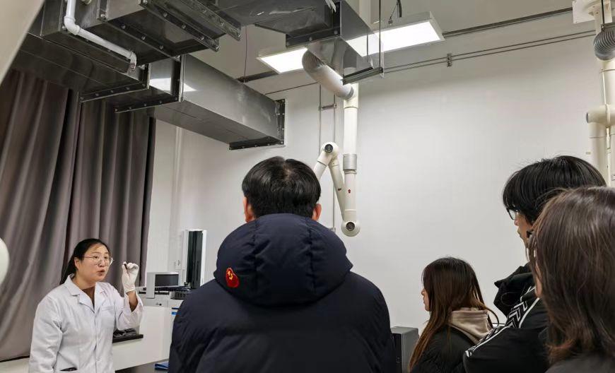 参观学习过程中,学生们紧跟技术人员,认真听讲,仔细观察仪器细节,并就操作要点、检测流程优化等问题进行交流。面对精密仪器,大家兴趣浓厚,现场学习氛围良好。指导老师结合课程内容,补充讲解仪器原理与实验课的关联,帮助学生梳理知识,实现理论与实践的有效衔接。