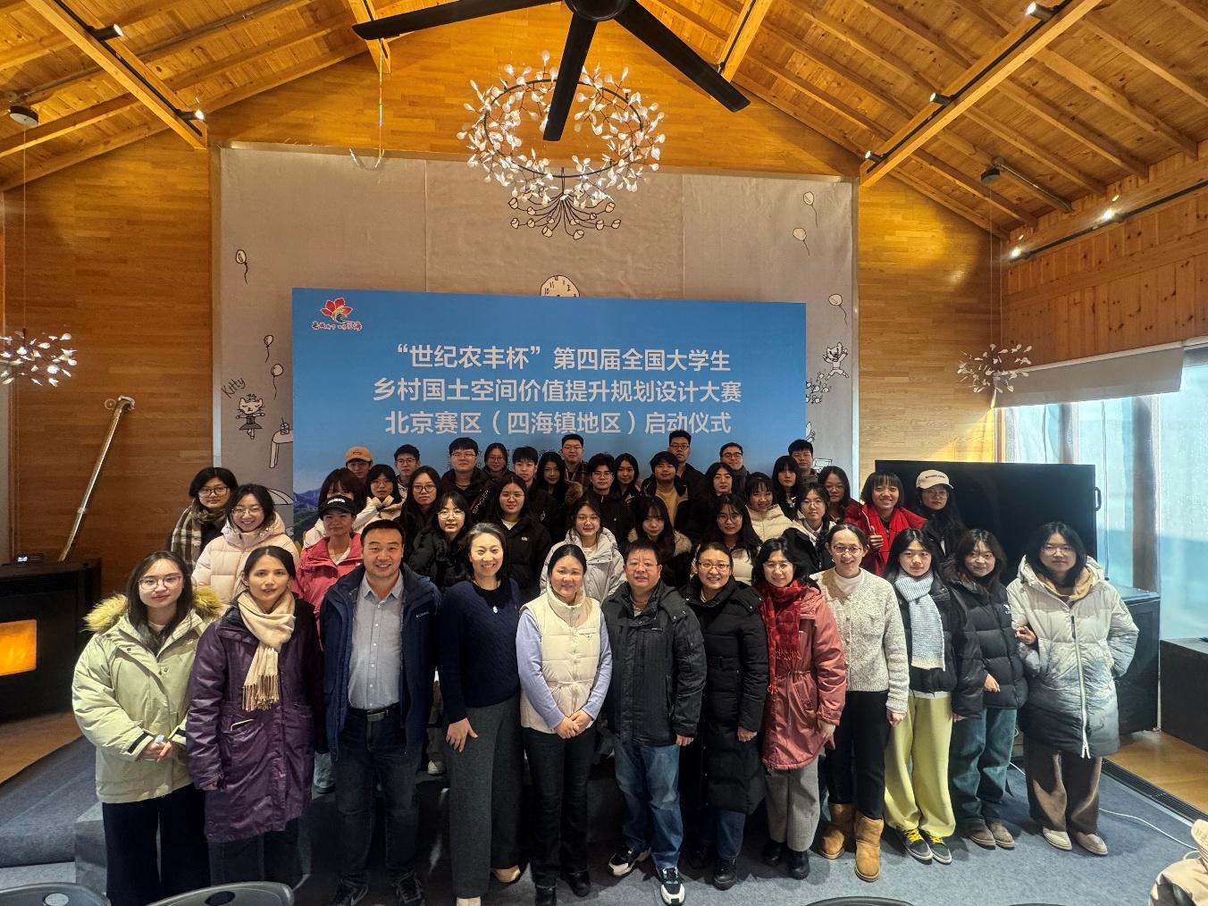 近日,为全面贯彻落实党的二十大精神,积极响应国家乡村振兴战略,加快推动国土空间规划体系建设,第四届全国大学生乡村国土空间价值提升规划设计大赛(北京赛区)开幕式及实地调研活动在北京市延庆区四海镇大吉祥村“大树与猫”民宿顺利举办并圆满落幕 。本次活动由中国国土经济学会主办,北京农学院、北京城市学院、北京市延庆区四海镇人民政府承办,世纪农丰土地科技有限公司协办。来自北京农学院、北京师范大学、北京城市学院、北京联合大学、中国农业大学、中国地质大学(北京)、北京工业大学和北京建筑大学等十余所高校的近200名师生共同参与,齐聚四海,围绕“统筹优化村镇布局、推进和美乡村建设”的大赛主题,开展了一场兼具理论深度与实践广度的实地踏勘与深度调研 。